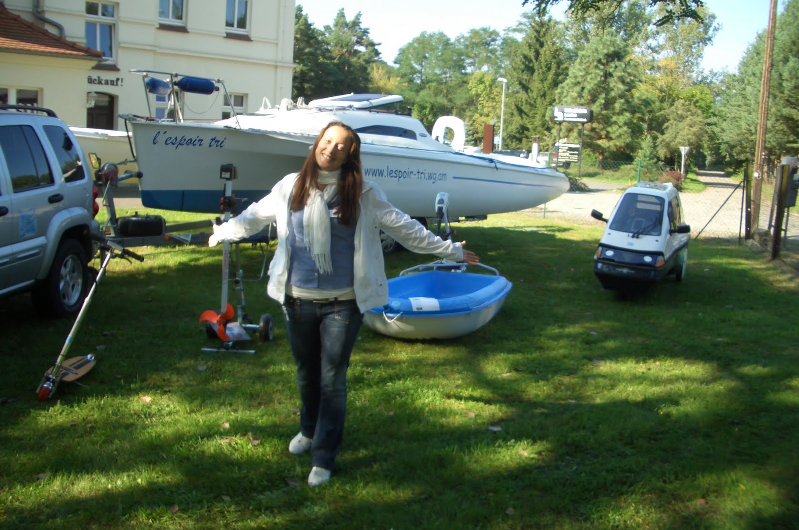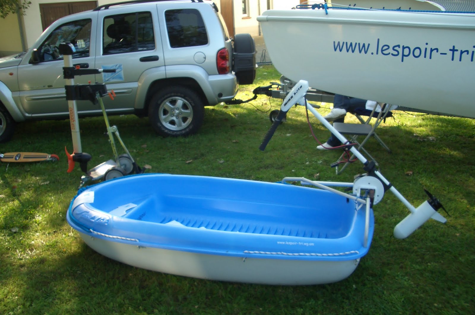 Am 11.09.2010 waren wir auf der 1. Erneuerbare Energien-Messe in der Louise in Domsdorf. Dort habe ich unsere l’espoir-tri, den Elektro-Trimaran mit Lithium Akku und Solaranlage sowie ein BIC Sportyak mit MinnKota Riptide E-Motor, einen Torqeedo Travel 401S einen Solax E-Roller und mein City el ausgestellt. Die Resonanz war durchgehend sehr gut. vor allem der E-Roller kam bei den Kindern gut an. Auch mit meinem Angebot an kleinen Booten und Kayaks sowie kleinen E-Antrieben traf ich genau die Interessen der Leute bei uns im „kleinen Spreewald“.