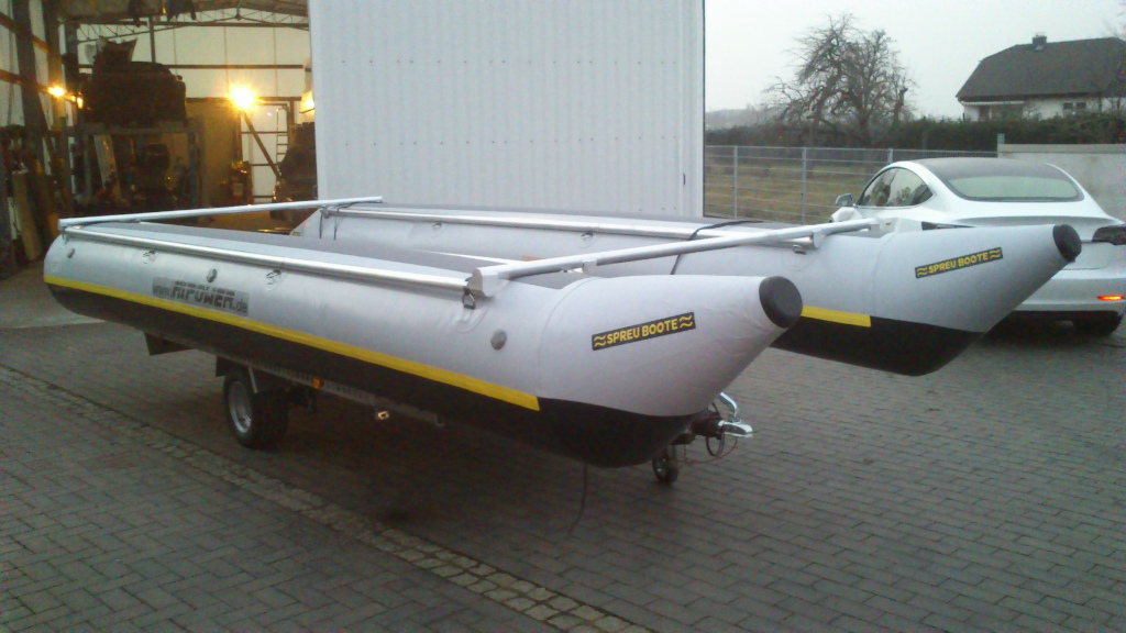 Neben Stehhöhe im Innenraum, Autopilot und separatem WC-Raum soll auch der Name für reichlich Nachfrage unter den Elektroautofans sorgen. In Anlehnung an den Tesla Cybertruck bauen wir den RiPower CyberKat.Für die nicht Bootsfahrer unter uns die gern Campen wird dieses „Boot“ auch ohne Rümpfe als Aufsatz für Lastanhänger und Pickup Ladeflächen verfügbar sein. Durch Leichtbautechnik in GFK-Sandwich-Waabe kann dieser dann auch von nahezu jedem PKW gezogen werden.