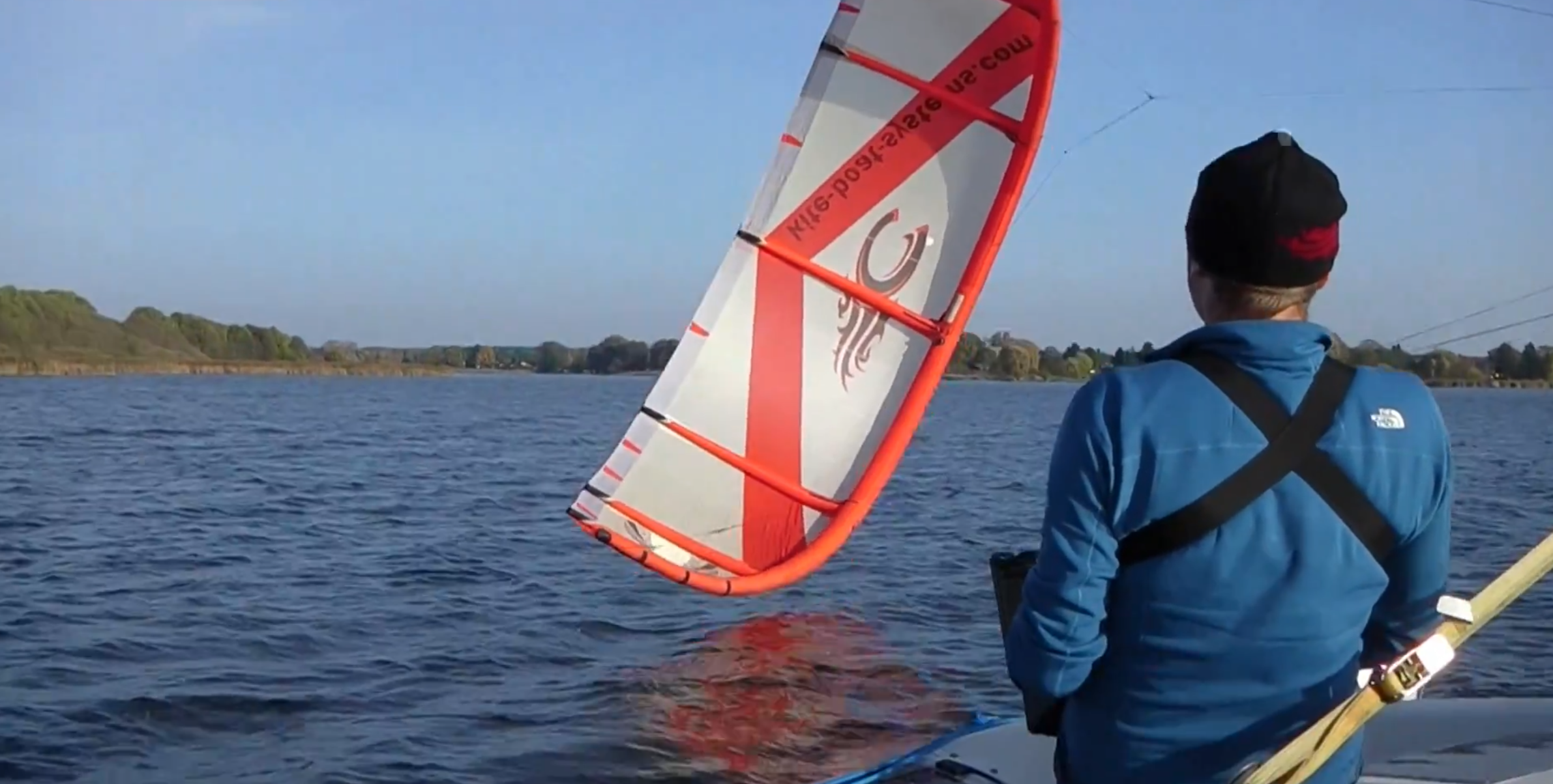 Das System bleibt fest an Bord montiert, es ist also kein Maststellen mehr erforderlich, nur den Kite aus dem Rucksack nehmen, aufblasen und los geht es. Wir können damit sogar an einem windigen Tag auf unserem Schwielochsee segeln. Da der Drachen in über 100m Höhe fliegt bekommt er viel mehr Wind ab als ein Segeltuch welches an einem Mast hängt, die Windabdeckung durch Bäume und anderen Hindernissen spielt dadurch keine Rolle mehr. Der Wind ist in dieser Höhe auch deutlich stabiler. Der Segeldruckpunkt am Boot wandert extrem nach unten, das Boot segelt immer aufrecht und damit ist die Kentergefahr deutlich geringer. Und was ebenfalls ein sehr wichtiger Punkt ist, die Anlage ist deutlich leichter als unsere bisherige Takelage. Hinzu kommt das unser Boot entlastet wird, da der Schirm immer einen Zug nach oben ausübt. Dies sind die wichtigsten Punkte die uns zur Umstellung auf dieses neue System bewegt haben. Natürlich gibt es auch einen Nachteil: der Kite benötigt einen gewissen Wind um zu starten, bei Flaute von Hauch zu Hauch segeln ist nicht möglich. Aber dafür haben wir ja unseren RiPower-Elektroaussenborder.